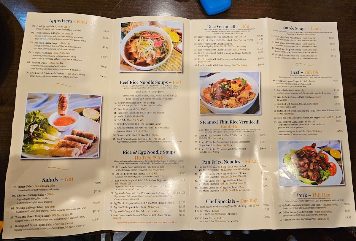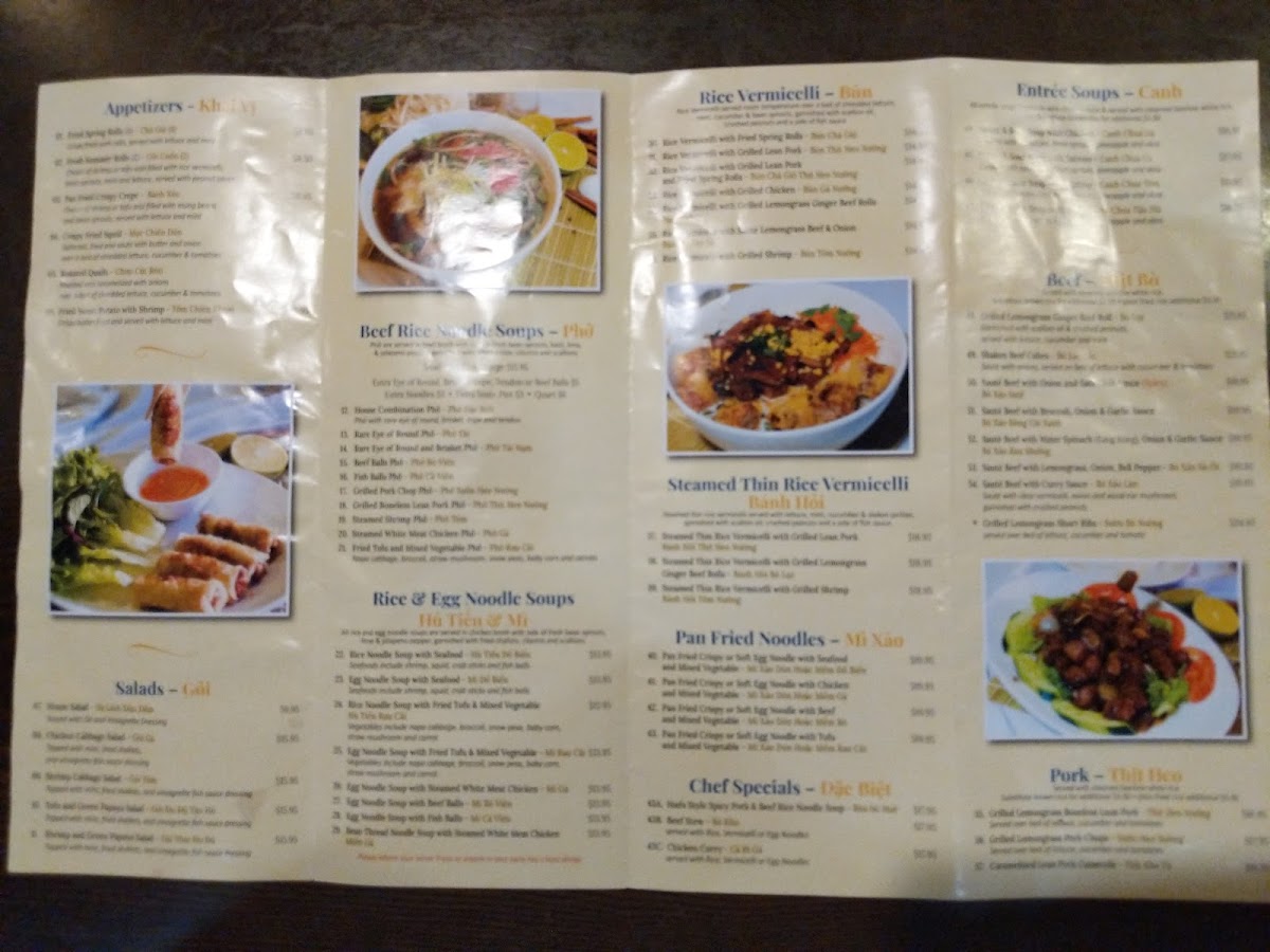 The menu is a vibrant tapestry of flavors, showcasing favorites like the traditional Pho, rich in aromatic broth and generous portions of beef. Vegetarian options like the vegetation pho cater to diverse palates, ensuring everyone is satisfied. For a lighter meal, the Rice Vermicelli with Grilled Chicken or Lemongrass Beef Rolls makes for an excellent choice, paired perfectly with fresh spring rolls and flavorful dipping sauces.